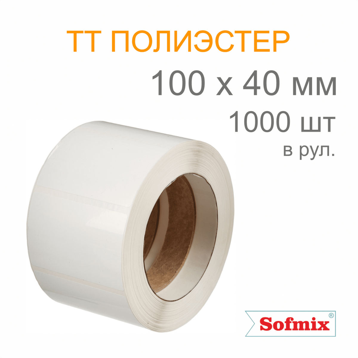 Этикетка ТТ полиэстер, усиленный акриловый клей, 100*40мм, 1000 в рул, вт40, ТТ-164-16211-1-2-0