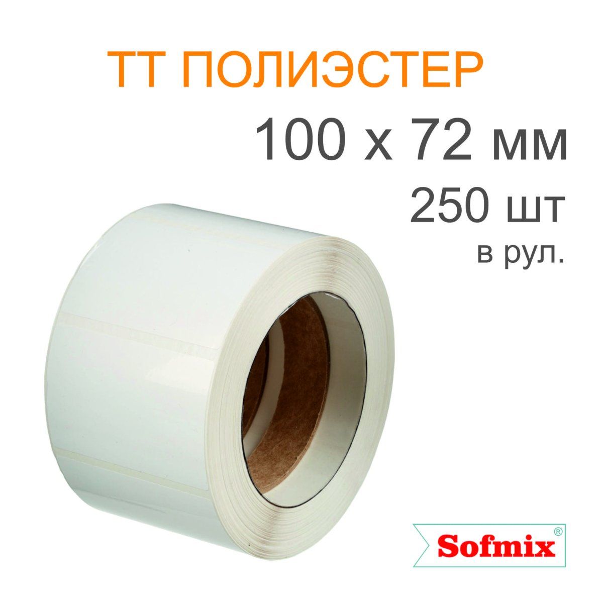Этикетка ТТ полиэстер, усиленный акриловый клей, 100*72мм, 250 в рул, вт40, ТТ-10-16211-0.25-2-0